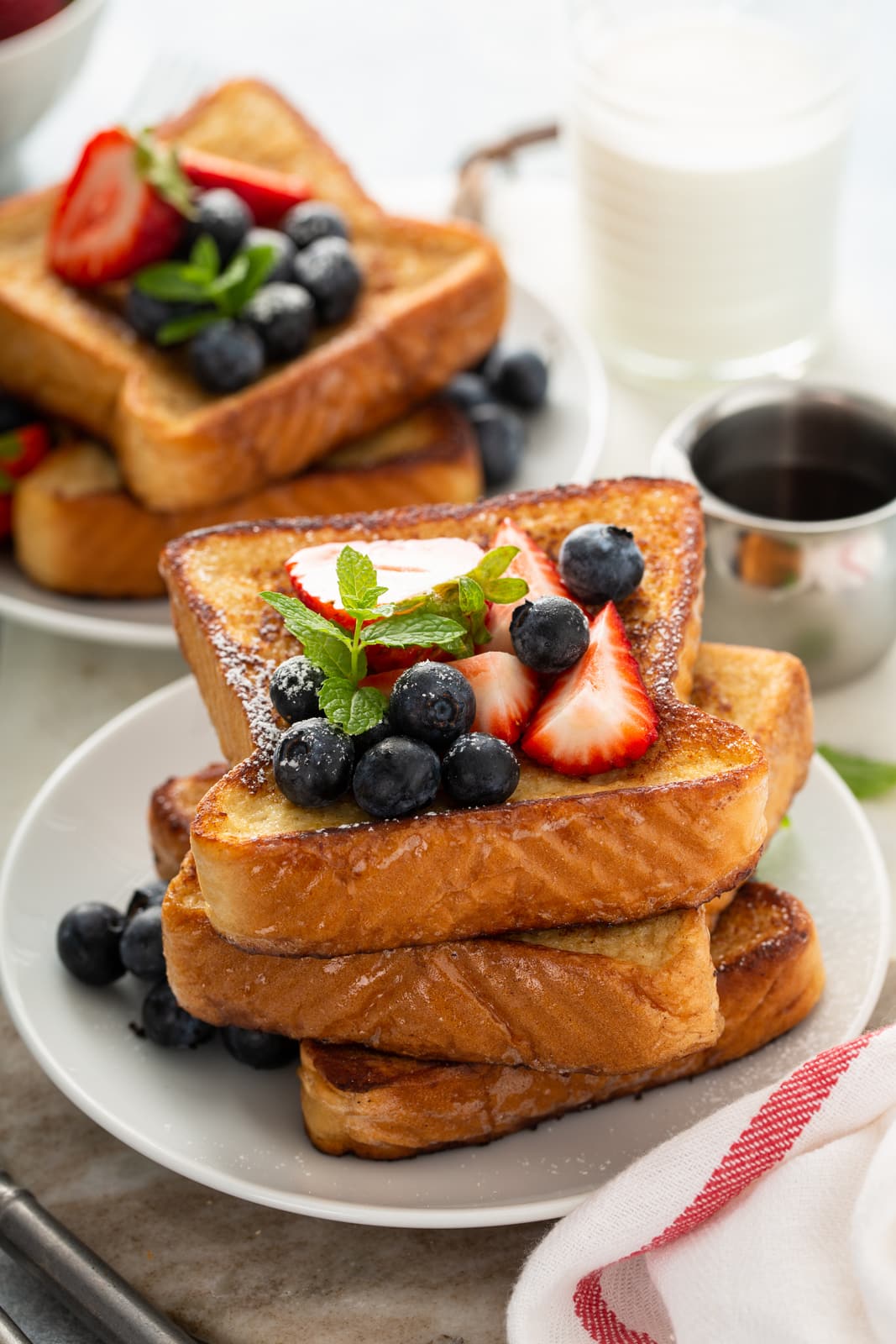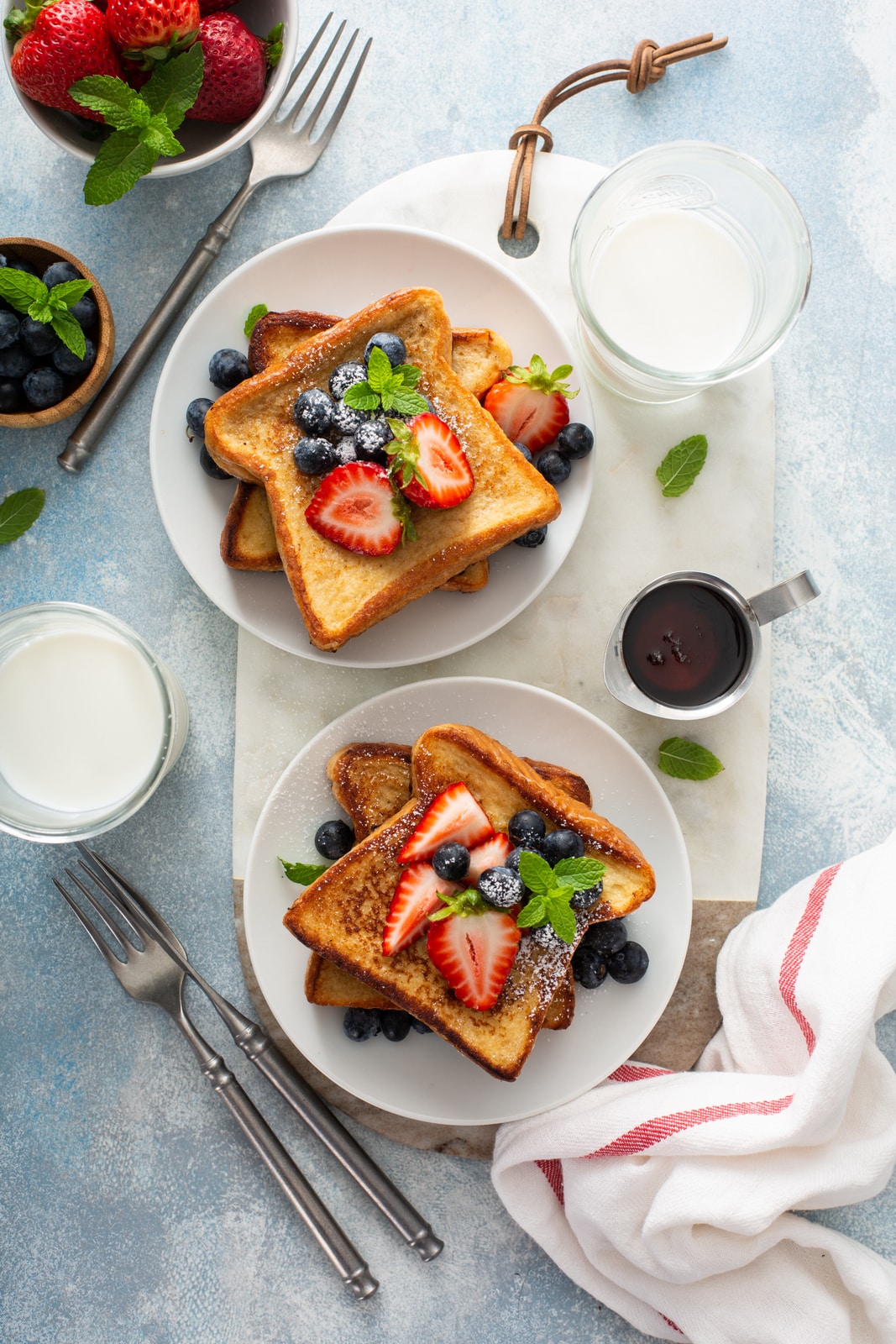 You can garnish your French toast with any type of berries. I chose strawberries and blueberries. And I also added a hint of powdered sugar. This recipe is ideal to make for breakfast with the family, or brunch if you’re hosting a shindig for friends, and you can never go wrong making this recipe for dinner.