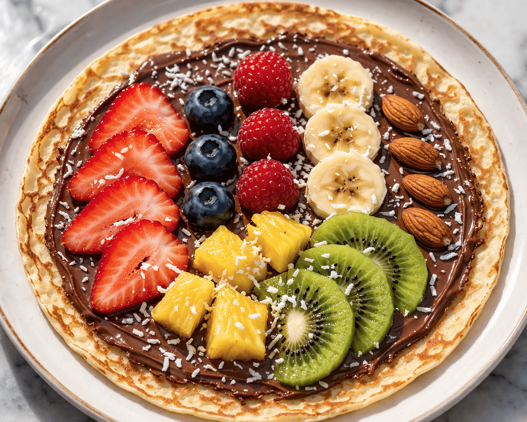 Bright, naturally sweet, and essential for balance—fresh fruits add color, freshness, and a light contrast that keeps each crepe from feeling too rich. They bring a clean, juicy element that makes every bite feel vibrant and well-rounded.