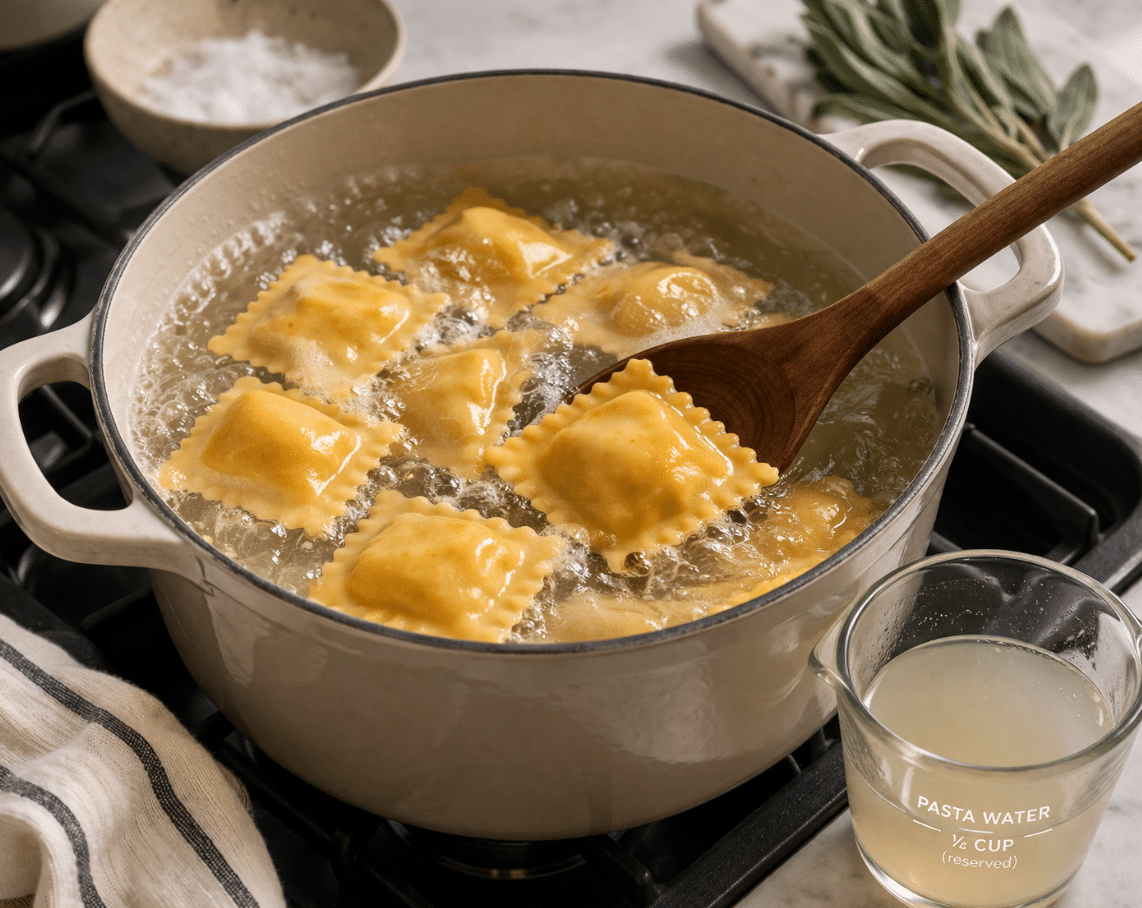 If you want to keep the dish a bit lighter while still maintaining its richness, you can replace half of the butter with a good-quality olive oil. You’ll still get that silky coating on the ravioli, but with a slightly fresher, more balanced feel.
