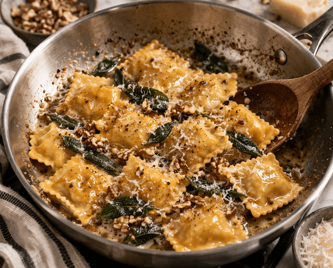 Brown butter, fresh sage, and pumpkin ravioli create layers of flavor that taste far more complex than the effort required.