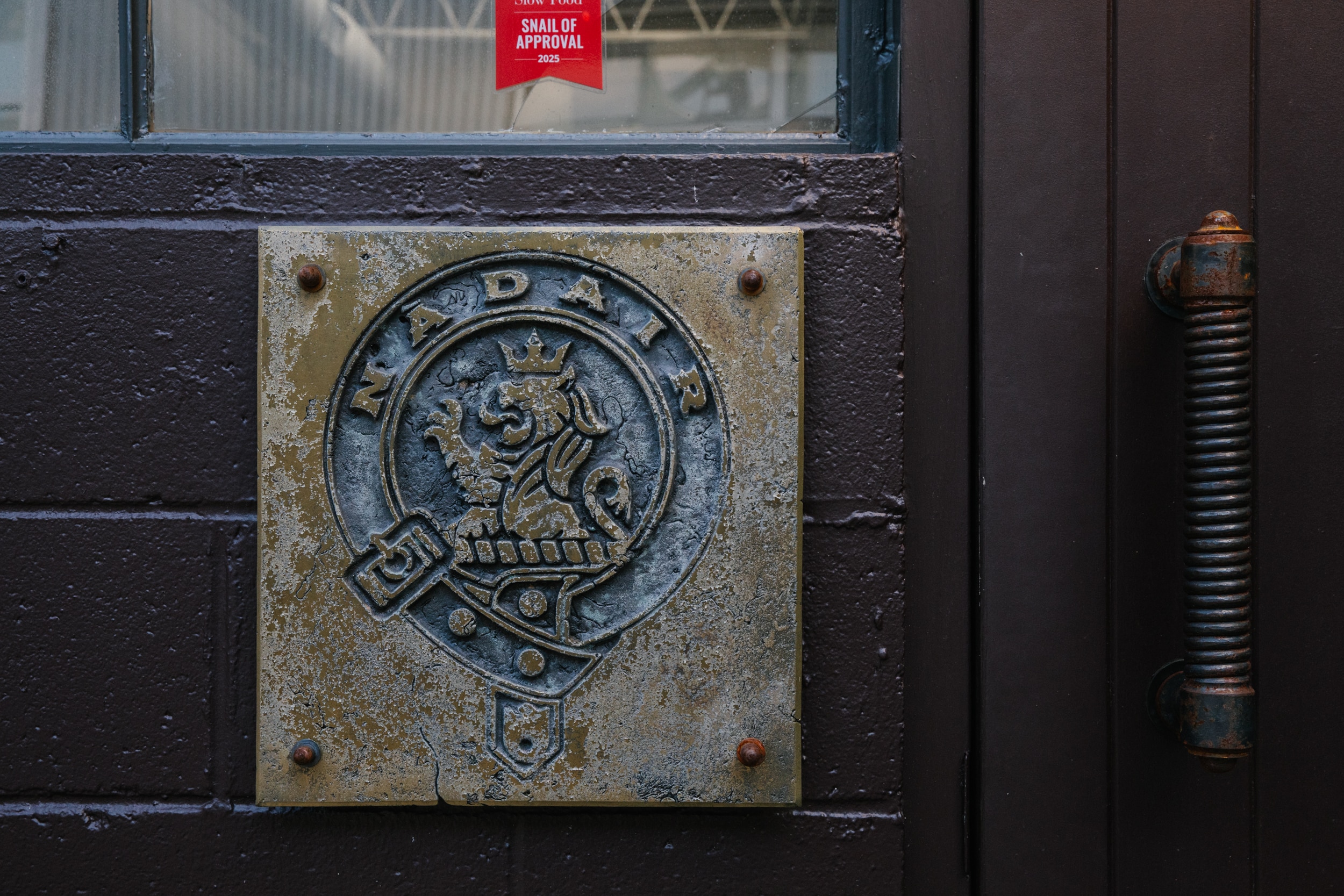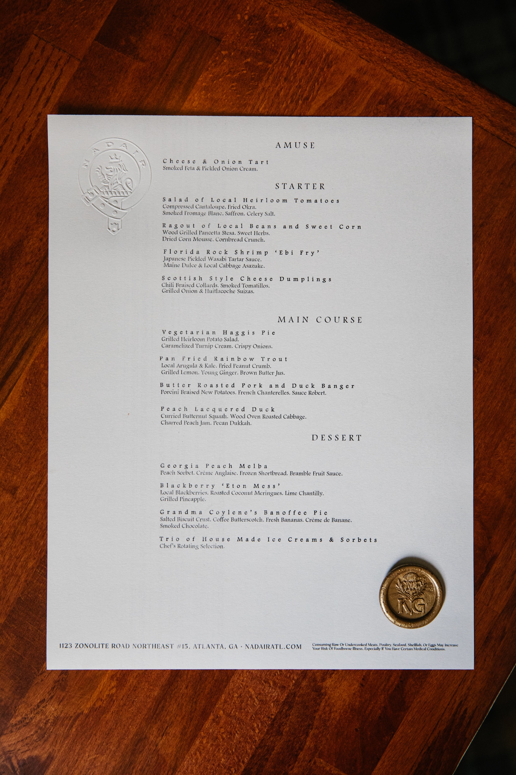 Nàdair sits at 1123 Zonolite Road in Atlanta’s Morningside neighborhood, and the experience begins before you ever step inside. The brass Gillespie clan crest mounted beside the entrance door is the first signal — this restaurant was not designed around a trend. It was built around a person, a family heritage, and a deeply held philosophy about where food comes from and why it matters.