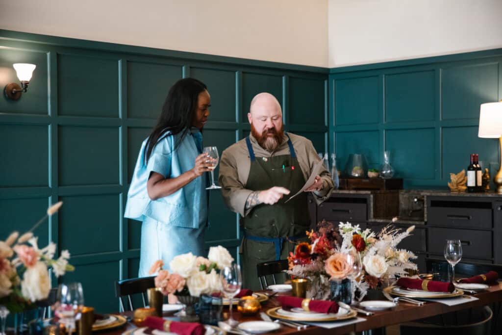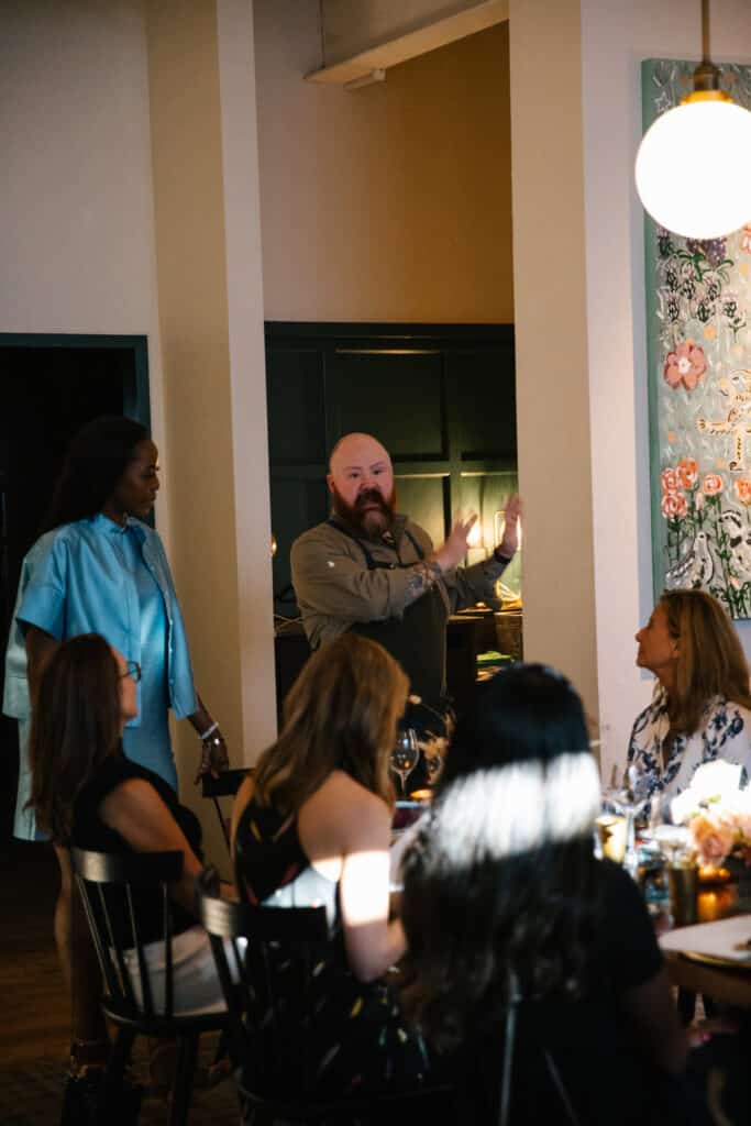 Before guests arrived, Kevin walked me through the menu personally — the sourcing decisions, the story behind each dish, the farmers and purveyors whose names belong alongside his on that menu card. Standing beside him in that teal-walled dining room, reviewing the evening together while the tablescape came to life around us, I was struck by how completely he inhabits this restaurant. Nàdair is not a concept he handed off. It is a place he tends.