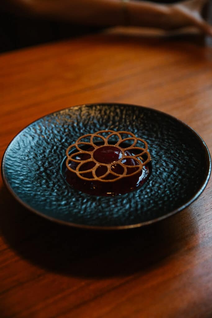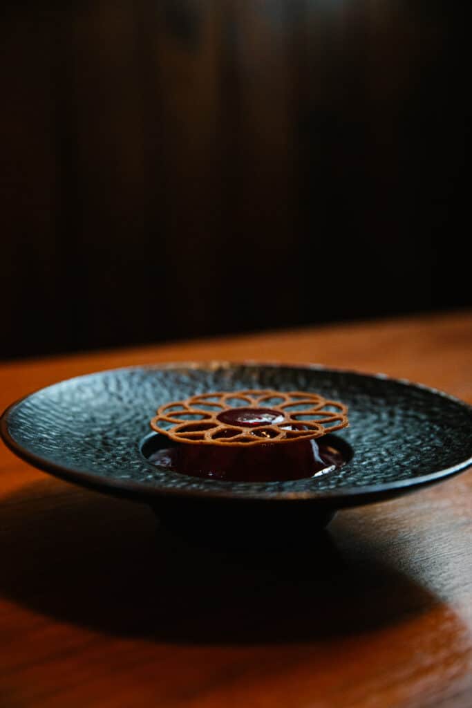 Dessert brought the evening home. The Georgia Peach Melba — peach sorbet, crème anglaise, frozen shortbread, bramble fruit sauce — was a perfect Georgia-meets-Scotland closing note. But it was Grandma Coylene’s Banoffee Pie that landed hardest. Salted biscuit crust, coffee butterscotch, fresh bananas, crème de banane, smoked chocolate — and named for Chef Gillespie’s grandmother. In a menu already full of thoughtful touches, that one felt deeply personal. You tasted the intention in every component, and you understood, by the time you set your fork down, that this is a chef who has never stopped cooking for the people who matter most to him.
