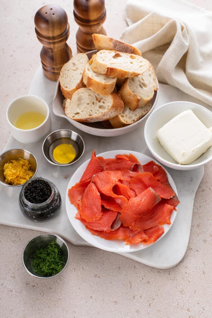 Smoked Salmon, Dill & Caviar Crostini ingredients