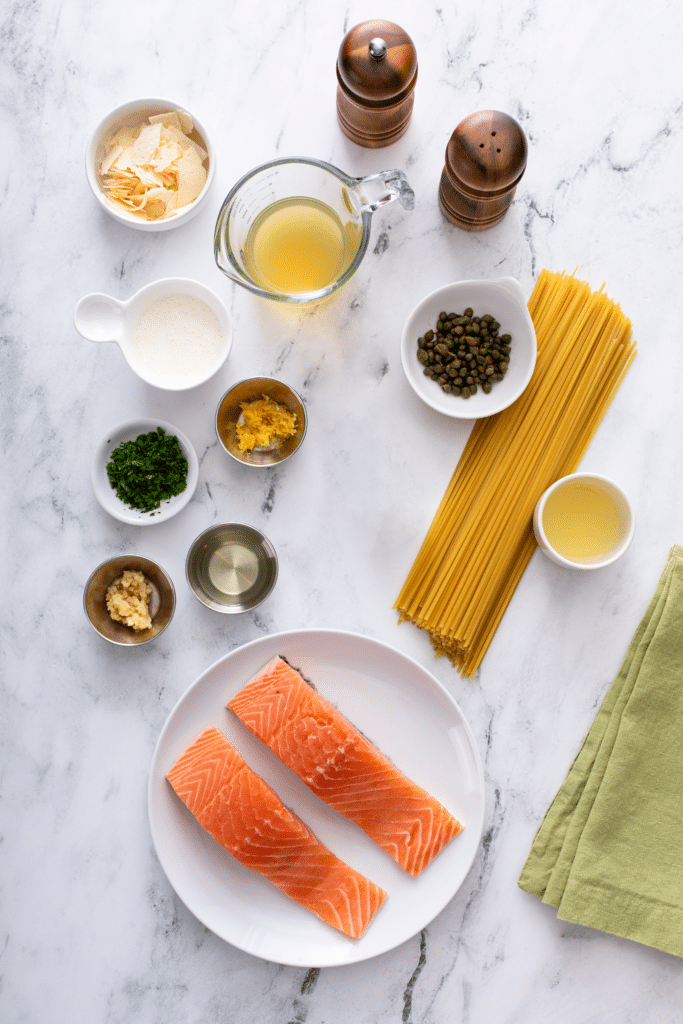 Creamy Lemon Salmon Piccata Pasta ingredients