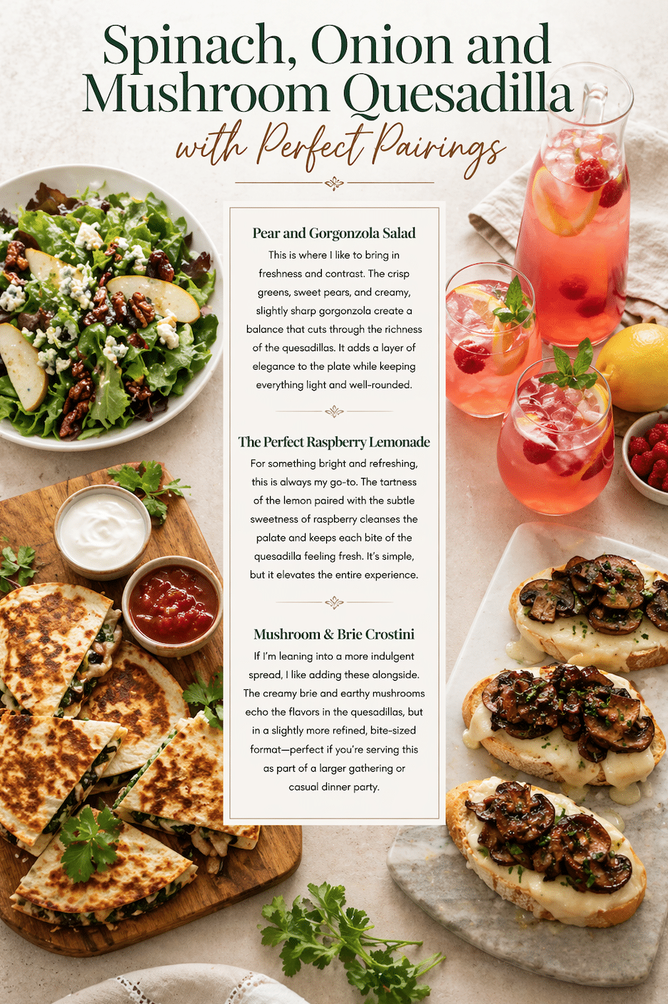 Enjoyed your Spinach, Onion and Mushroom Quesadilla? Get inspired to entertain with How to Host a Palm Beach Royale–Inspired Finale Party (Dinner or Brunch)—perfect for creating a chic and memorable gathering.