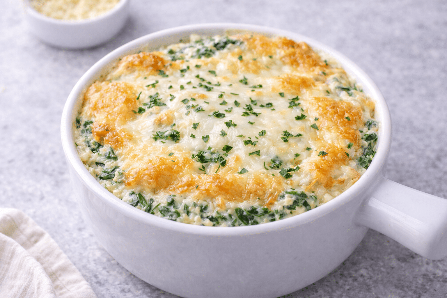 During the holidays, I always look for appetizers that feel festive but are still easy to prepare ahead of time. This spinach dip checks both boxes. The creamy texture and golden cheesy top make it feel indulgent and cozy, which fits perfectly with the celebratory atmosphere of the season.