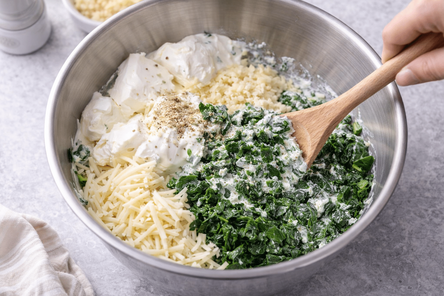 Always squeeze the spinach thoroughly.