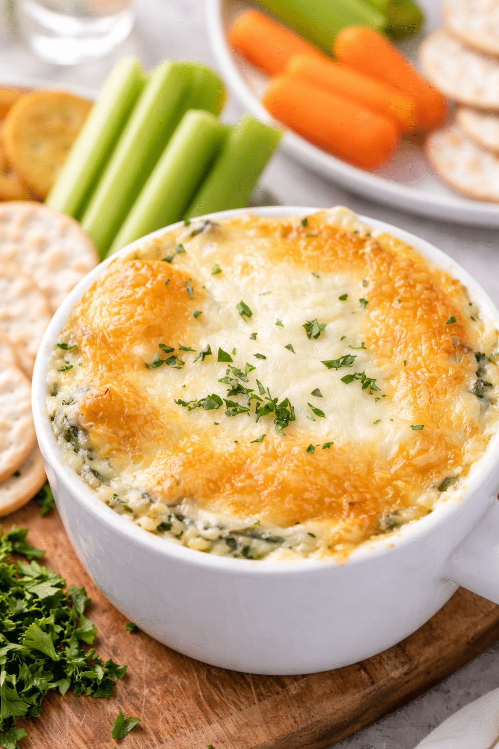 • Sprinkle with parsley and serve warm with crostini, crackers, or vegetables.