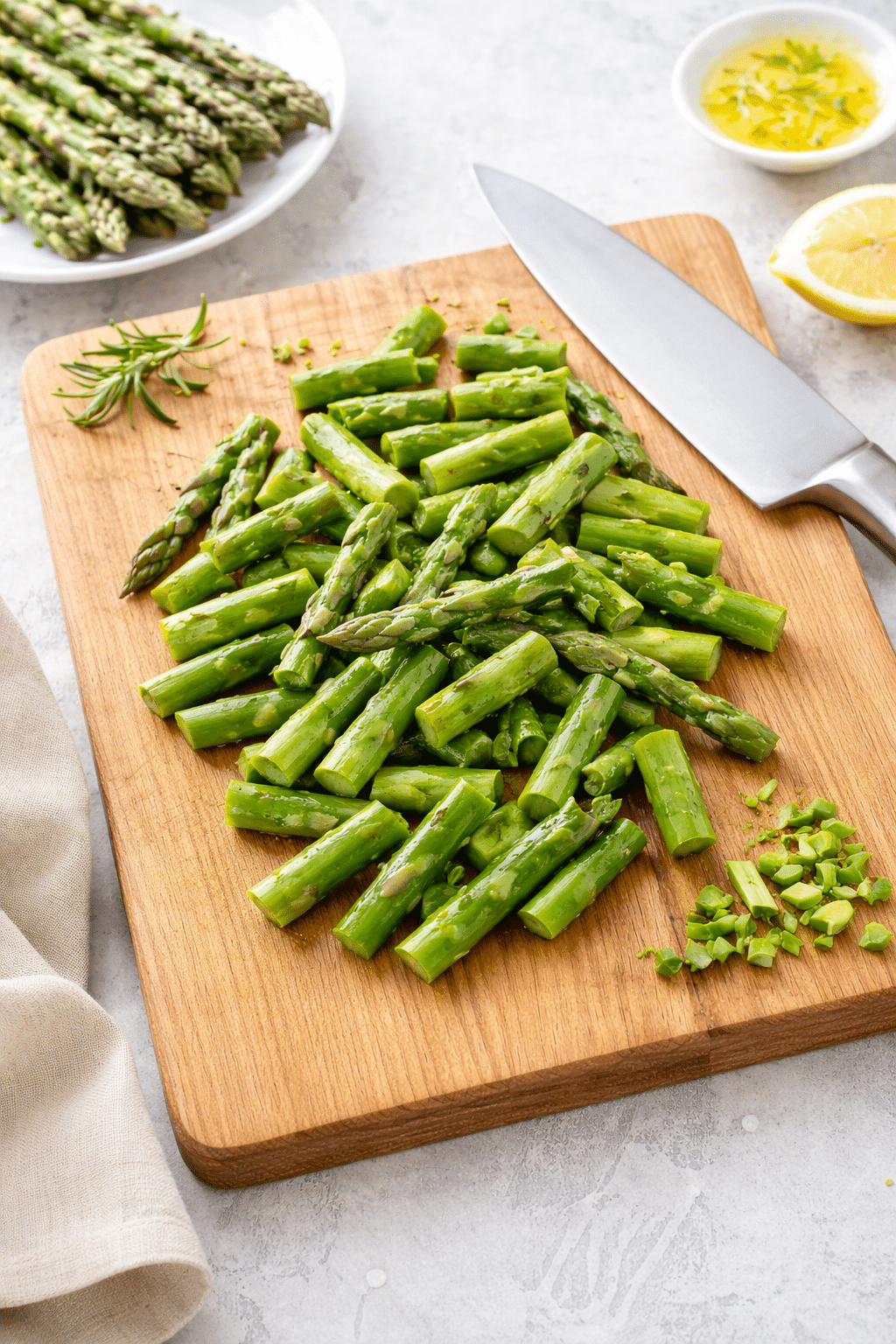 Cut asparagus into bite-size pieces.