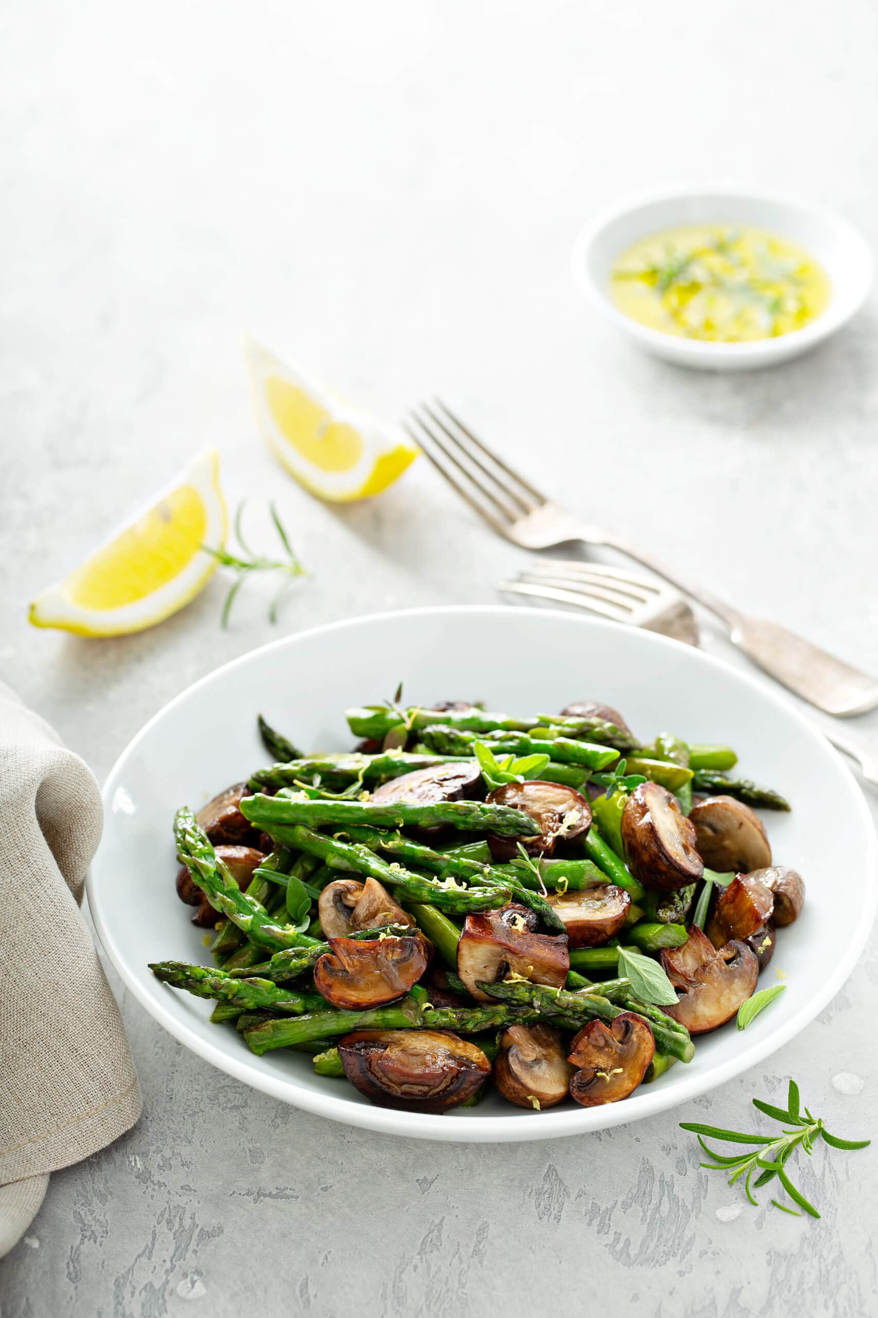 The earthy mushrooms, tender asparagus, and fresh zing of lemon create a perfect flavor combination.