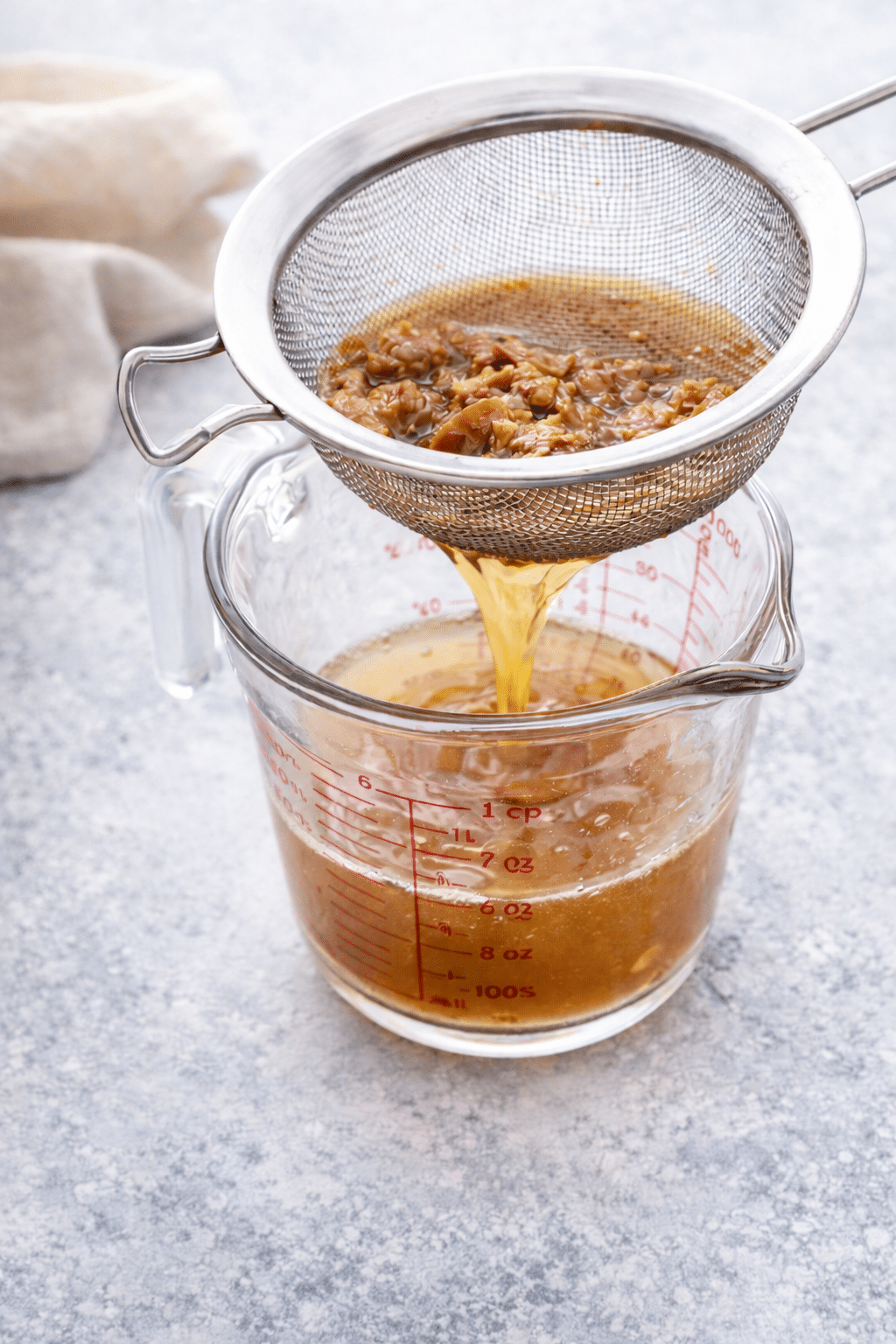 • Strain the cooking liquid, discarding solids. Reserve liquid.