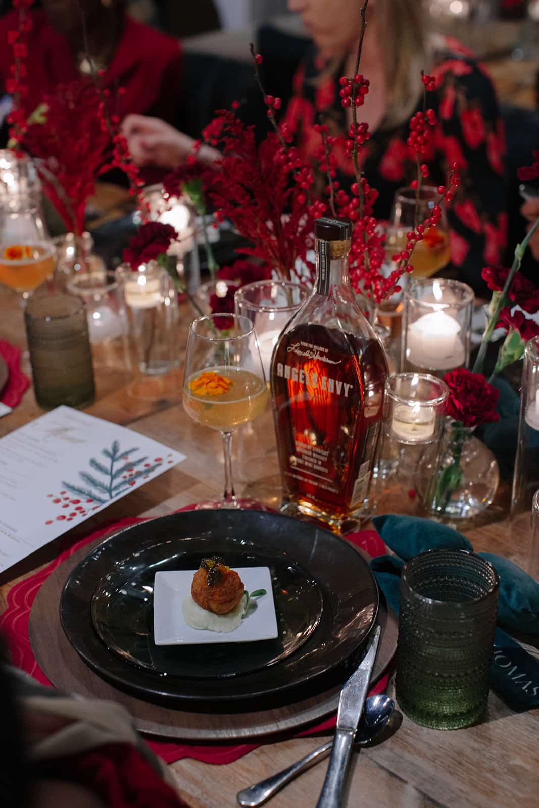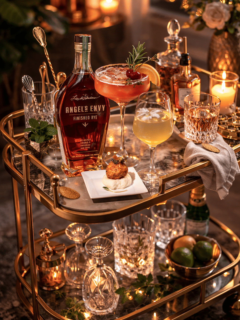 A signature drink sets the tone the moment guests arrive. Whether it’s a festive cocktail, champagne-based sip, or seasonal mocktail, having a featured beverage adds an elevated, intentional touch.