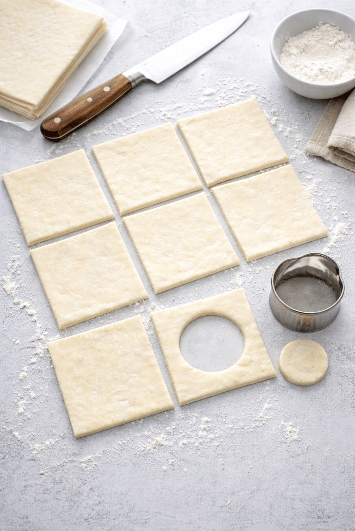 A 1.5-inch biscuit cutter is the perfect tool for shaping pastry rounds with clean, even edges, giving your rhubarb puff pastries a polished bakery-style look. It makes prep quicker, keeps each piece uniform, and helps create that beautiful presentation that makes homemade pastries feel extra special.